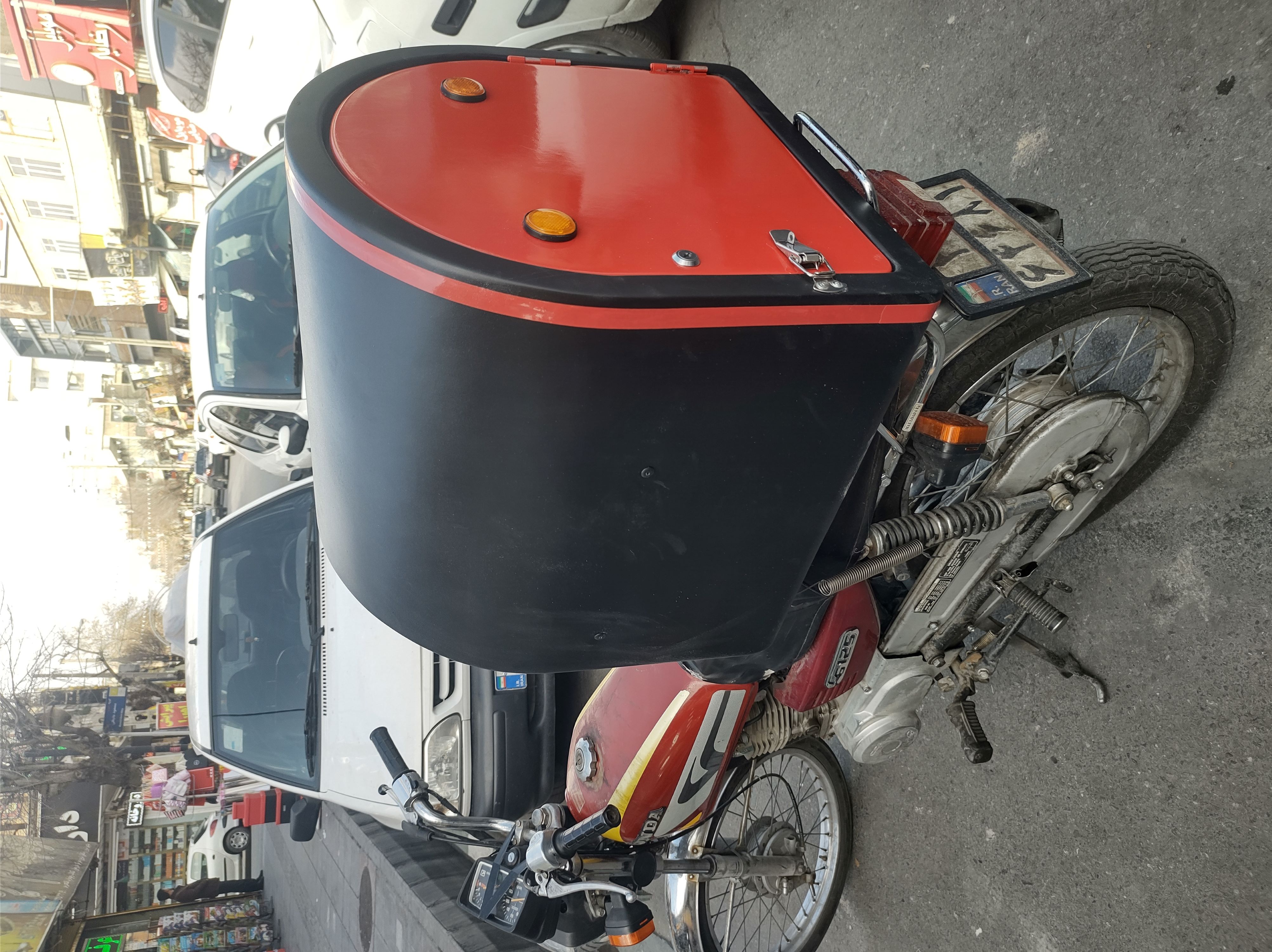 جعبه پیک موتوری مدل طاق بسطان دارای طراحی مهندسی ایرانی و مقاومت بالا دارای دو قفل داخل فوم یک رو المینیوم دارای طبقه سینی فنر تسمه فلزی دو میلی متر